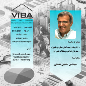 Der Verein VIBA (Verein der iranischen Bauingenieure und Architekten), ein Mitgliedsverein des Dachverbands diab, lädt zu seiner öffentlichen Monatsversammlung im Mai ein. Herr